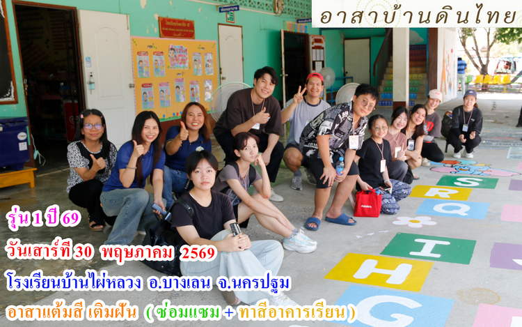 ในปี 69 นี้  หลัง จากจัดกิจกรรม ที่โรงเรียนวัดม่วงตารศมาหลายรอบ     ทางทีมงานอาสาบ้านดินไทยได้รับการติดต่อ จาก ผอ.โรงเรียนบ้านไผ่หลวง อ.บางเลน จ.นครปฐม  ขอความช่วยเหลือ ให้ไปช่วย ปรับปรุงอาคารเรียน ทาสี สนามเด็กเล่น ทาสีอาคารเรียน