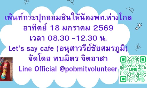 อาสาเพ้นท์กระปุกออมสินให้น้องพท.ห่างไกล อาทิตย์ 18 มค 2569 (08.30-12.30)